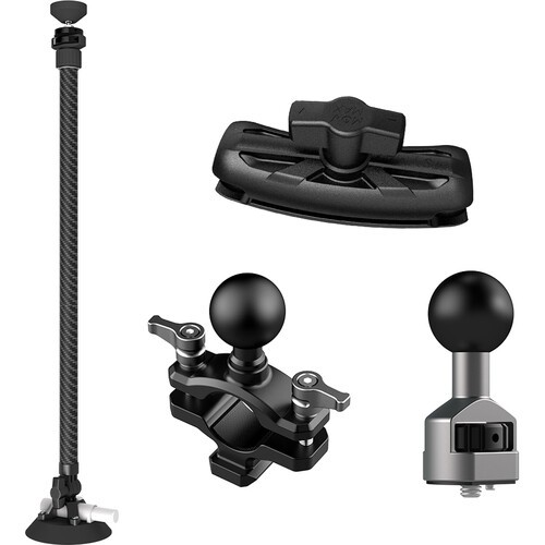 MOVMAX podesiva teleskopska šipka s vijkom 1/4"-20 omogućuje stabilno snimanje vjetrobranskog stakla u automobilu, proteže se od 2,5 do 4,1' (75–125 cm) s konstrukcijom od karbonskih vlakana, dvostrukim vakuumskim čašicama za montažu na krovni otvor i središnju konzolu, te uključuje kuglastu glavu 1/4"-20, dvostruku utičnicu i stezaljku šipke s kuglastom glavom za potpuno zglobno pozicioniranje kamere.