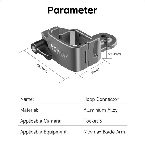 Besprijekorno integrirajte svoju DJI Osmo Pocket 3 gimbal kameru s MOVMAX Blade Arm sustavom za montažu u automobil pomoću MOVMAX Blade Arm Hoop konektora, kompaktne sive aluminijske stezaljke koja se sigurno omotava oko baze Osmo ručke s vijkom za zaključavanje za brzo pričvršćivanje otporno na vibracije, omogućujući dinamične snimke montirane na vozilo s profesionalnom stabilnošću.