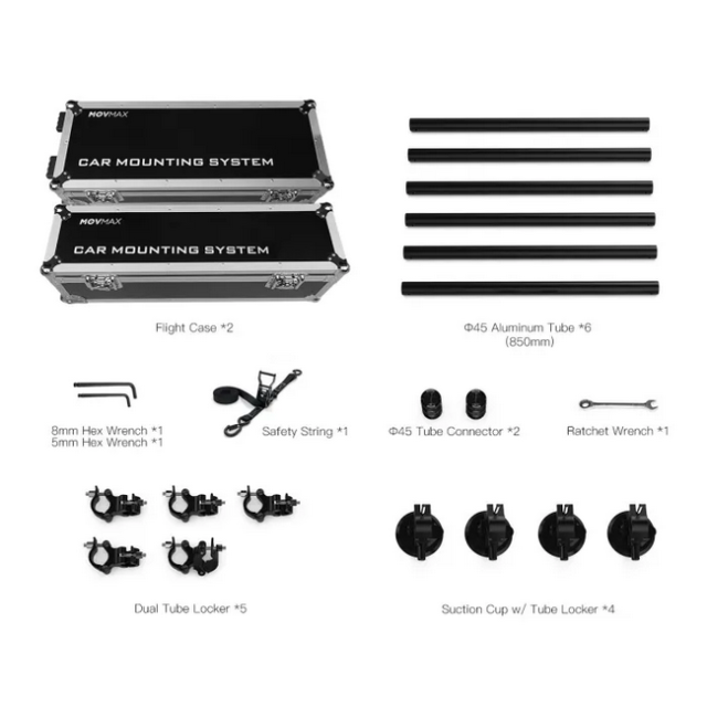 MOVMAX Φ45mm Auto Mounting System Pro Kit sveobuhvatno je i profesionalno rješenje za postavljanje dizajnirano posebno za sigurnu montažu kamera i opreme na vozila. Ovaj komplet uključuje robusne komponente i dodatke prilagođene da osiguraju stabilnost i sigurnost tijekom dinamičnog snimanja u automobilu. Idealan za profesionalne filmske snimatelje i snimatelje, MOVMAX Φ45mm Car Mounting System Pro Kit pruža pouzdanu potporu i svestranost, omogućujući filmašima snimanje visokokvalitetnih snimaka iz jedinstvenih i izazovnih kutova s pouzdanjem i preciznošću.