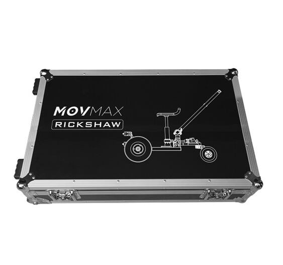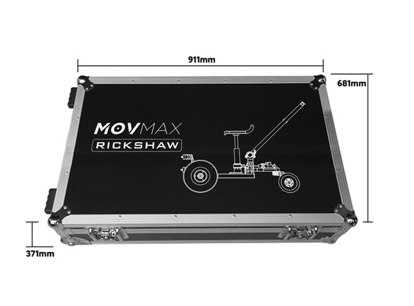 MOVMAX Flight Case za All-Terrain Rickshaw je robusno, vodootporno crno transportno rješenje s tvrdom školjkom, udubljenim kotačima i sigurnim zasunima, dizajnirano za siguran smještaj i mobilizaciju svake modularne komponente rikše u prostranoj praznoj unutrašnjosti dimenzija 91 x 68 x 36 cm, zaštićenoj izdržljivom konstrukcijom od šperploče.