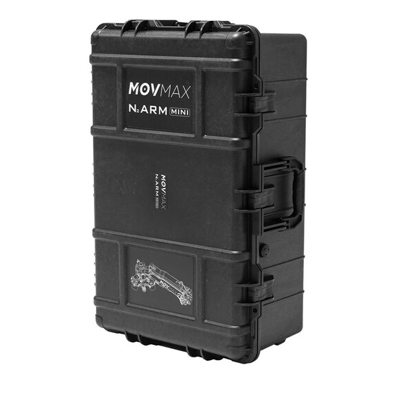 MOVMAX Flight Case za N2 Air Arm Mini Pro Kit je prijenosno, izdržljivo transportno rješenje s tvrdom školjkom, prilagođenom pjenastom unutrašnjosti, nosačem i sustavom remenica, dizajnirano za sigurno smještaj i mobilizaciju cijelog Mini Pro Kita - uključujući ruku za apsorpciju udaraca, izolator vibracija, vakuumske čašice i pribor - za besprijekorno snimanje na lokaciji s montažom u vozilo.