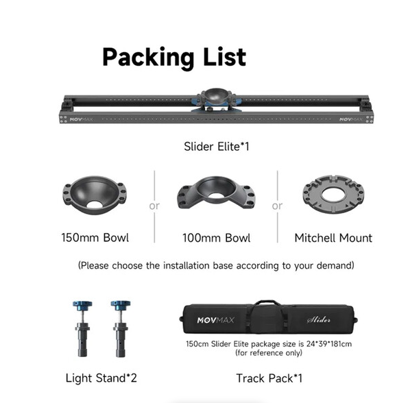 MOVMAX Camera Slider Elite 35" omogućuje ultra glatko, tiho ručno pomicanje duž 35,4 inča robusnih aluminijskih tračnica s nosačem temeljenim na trenju koji podržava do 55,1 lb, s nosačem od 100 mm za profesionalne fluidne glave i dvostrukim adapterima za stalak od 5/8" - u paketu s kočnicama/prigušivačima i torbom za nošenje za jednostavan transport i kinematografsko praćenje na setu.