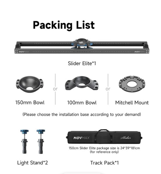 MOVMAX Slider Elite 70" s nosačem za zdjelu od 100 mm omogućuje ultra glatko, tiho ručno pomicanje duž 70,8 inča robusnih aluminijskih tračnica s nosačem temeljenim na trenju koji podržava do 55,1 lb, s nosačem za zdjelu od 100 mm za profesionalne fluidne glave i dvostrukim adapterima za stalak od 5/8" - u paketu s kočnicama/prigušivačima i torbom za nošenje za jednostavan transport i kinematografsko praćenje na setu.
