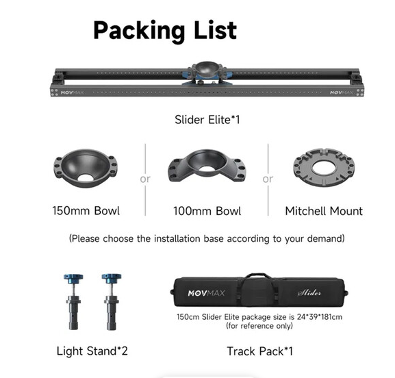 MOVMAX Slider Elite 35" s Mitchell nosačem omogućuje ultra glatko, tiho ručno klizanje duž 35,4 inča robusnih aluminijskih tračnica s nosačem temeljenim na trenju koji podržava do 55,1 lb, s Mitchell ravnom bazom za profesionalne kamere i dvostrukim adapterima za stalak od 5/8" - u paketu s kočnicama/prigušivačima i torbom za nošenje za jednostavan transport i filmsko praćenje na setu.