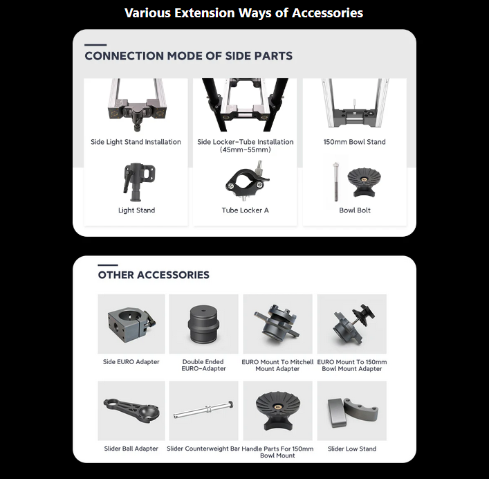 Izrađen za zahtjeve profesionalnog snimanja filmova, MOVMAX Slider System pruža iznimnu stabilnost i fluidno kretanje u više duljina - 60 cm, 90 cm, 120 cm, 150 cm, 180 cm i 210 cm - što ga čini idealnim za niz scenarija snimanja. Nosač klizača podržava Mitchell, nosače za zdjelu od 100 mm i nosače za zdjelu od 150 mm, omogućujući višenamjenski rad od 360° kada se upari s adapterom od 360°. Njegov dvostruki način korištenja omogućuje besprijekorno prebacivanje između načina rada klizača, koji sadrži ultra precizne CNC obrađene aluminijske, čelične i bakrene komponente za glatko kretanje, i Bangi načina rada, koji prilagođava klizač za upotrebu sa stativima, kolicima ili platformama putem Euro-mount adaptera. Izrađen od visokočvrste aluminijske legure serije 7 zrakoplovne klase, nudi izdržljivost, krutost i dosljedne performanse. Način bočnog širenja omogućuje montažu na stalke za svjetla, kutije za jabuke ili Euro-adaptere za svestrane postavke. MOVMAX Slider je profesionalni alat dizajniran za pružanje preciznih, filmskih pokreta u bilo kojem produkcijskom okruženju.