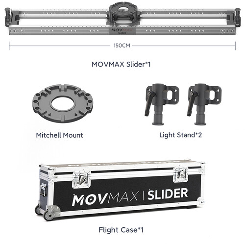 MOVMAX klizač s Mitchell nosačem (1500 mm) profesionalni je 59" aluminijski klizač, savršen za postizanje glatkih i preciznih pokreta kamere. Sadrži klizni sustav koji se temelji na trenju i uključuje nosač za praćenje s Mitchell nosačem, što omogućuje svestrani klizač i načini pomaka.