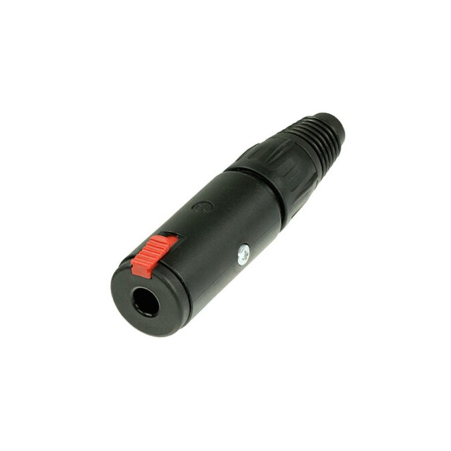 Profesionalna 1/4" kabelska utičnica s zaključavanjem za sigurne linijske veze. Crno metalno kućište, srebrni kontakti, izvrsna zaštita kabela. 3-polna linijska utičnica telefonskog kabela pruža stabilne i sigurne veze gdje može doći do slučajnog isključivanja ili udara i vibracija . Zabravljuje se standardnim mono ili stereo utikačima promjera A. Utikač se automatski zaključava prilikom spajanja i otključava samo pritiskom na crveni jezičak za otpuštanje.