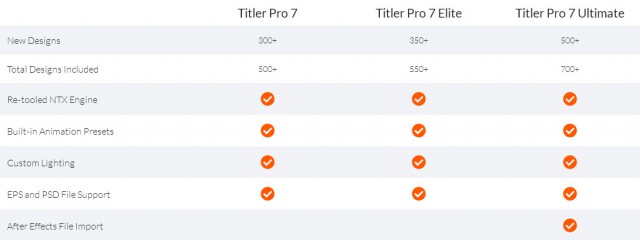Stvorite impresivne 3D titlove s maksimalnom lakoćom. Sada možete obogatiti svoje džinglove rotiranjem teksta i objekata duž X, Y i Z osi, kao i dodavanjem efekata zaobljenim rubovima i povlačenjem profila, podešavanjem osvjetljenja ili efekata slojeva. Ultimate verzija također uključuje modul za uvoz projekata iz aplikacije za kompozitiranje After Effects i omogućuje da se neki parametri kompozicije nastave uređivati u Titler Pro plug-in okruženju!