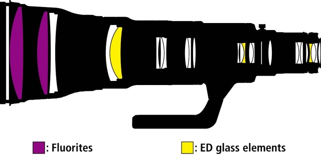 Izdržljiva konstrukcija od legure magnezija i dva optička elementa od fluorita značajno smanjuju težinu leće i pružaju bolju ravnotežu za lakše rukovanje. Optički elementi od fluorita nude više frekvencije prijenosa i manju disperziju svjetlosti od konvencionalnih ED stakala.