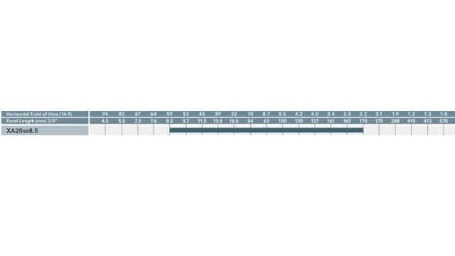 Fujinon XA20sx8.5BRM HD Professional Lens je ENG telefoto objektiv dizajniran za 2/3" fotoaparate. Ima 20x zum, žarišnu duljinu od 8,5 do 170 mm i relativni otvor blende od 1:1,8 u rasponu od 8,5 do 113 mm i 1:2,7 na 170 mm Napredna svojstva stakla smanjuju efekt obruba boja uzrokovan time što leća ne može fokusirati sve boje na istu…