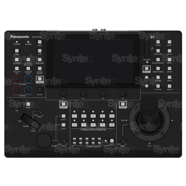 Novi (Q4/2018) daljinski upravljač za instalacijske kamere (ne samo) Panasonic također je kompatibilan s novim 4K modelom UE150 i nudi niz inovacija uključujući. joystick s integriranim kontrolerom fokusa s klackalicom koji omogućuje kontrolu pokreta i fokusa jednom rukom i veliki LCD zaslon osjetljiv na dodir za podešavanje uređaja i praćenje videa na SDI ulazu.