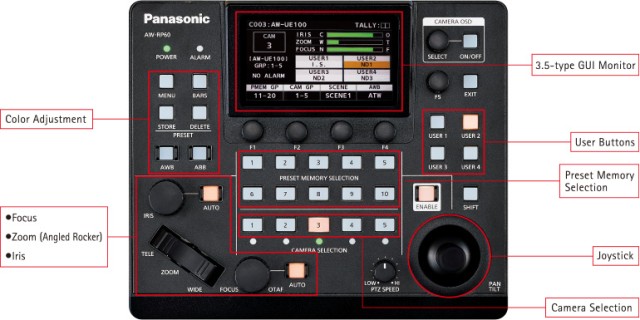 Novi joystick podržava glatke operacije pomicanja i naginjanja i osigurava precizno snimanje ciljane slike. Držač joysticka je otprilike 1,5 puta veći od prethodnog modela AW-RP50, što omogućuje stabilniji rad.