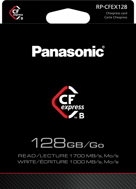 Profesionalna kartica Panasonic CFexpress od 128 GB s velikom brzinom čitanja/pisanja dizajnirana za dugotrajno opterećenje i sigurno snimanje.