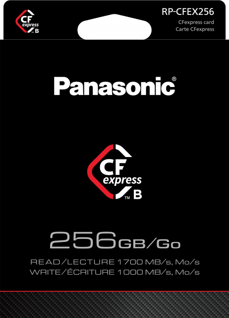 Profesionalna CFexpress 256GB Panasonic kartica s visokim brzinama čitanja/pisanja dizajnirana za dugotrajno opterećenje i sigurno snimanje.