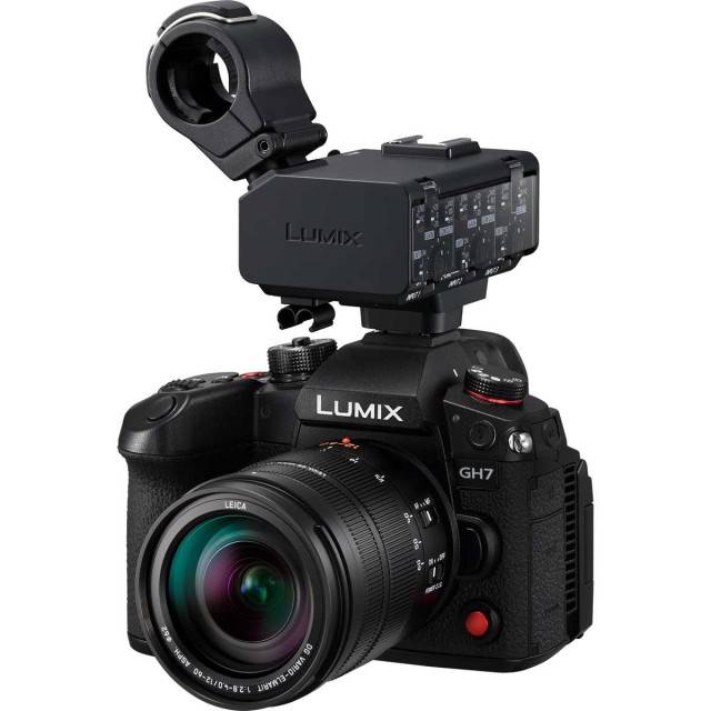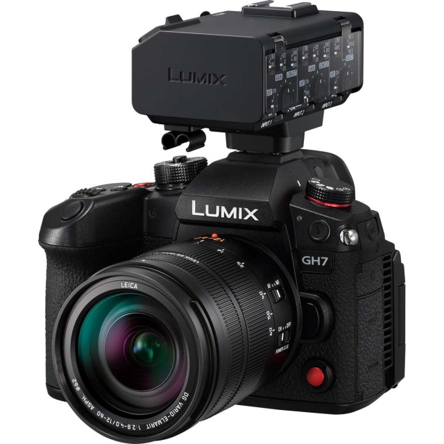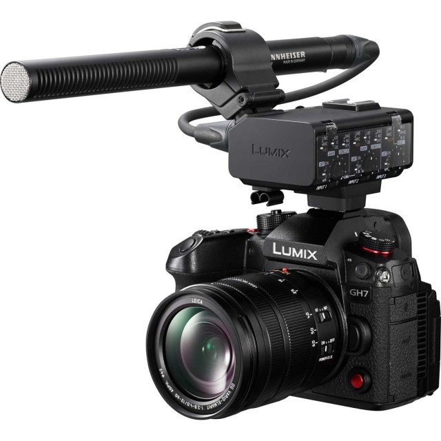 Proširite audio mogućnosti LUMIX DC-GH7 fotoaparata bez ogledala (i GH6 iz FW v3.0, S5M2 iz FW 3.1, S5M2X iz v2.1, G9M2 iz v2.2) s DMW-XLR2 mikrofonskim XLR adapterom! Napaja se izravno iz kamere preko aktivne papučice i ima dva XLR ulaza za korištenje s profesionalnim mikrofonima i dodatni 3,5 mm stereo audio ulaz za ostale audio dodatke. Uređaj je opremljen kontrolnom pločom s prozirnim poklopcem na kojoj se nalaze brojne fizičke kontrole za promjenu razina ili visokopropusnih filtara. Također podržava formate snimanja visoke razlučivosti do 24-bita / 96 kHz i pruža fantomsko napajanje od 48 V za dva XLR ulaza ili 3,5 mm ulaz (Plug-in Power). Postoji kabelska stezaljka za upravljanje kabelima, a utičnica na vrhu jedinice može podržavati druge dodatke. Jedinica podržava 2-kanalni linearni 32-bitni zvuk s pomičnim zarezom pri uzorkovanju do 96 kHz (samo GH7) i 4-kanalni 24-bitni zvuk do 48 kHz. U prodaji od 7/2024 .