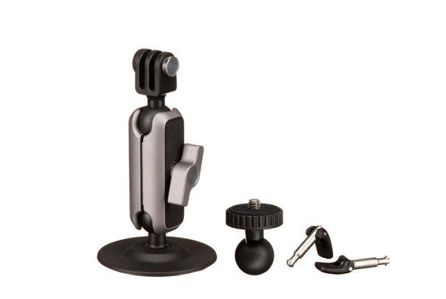 Baza koristi visokočvrsto 3M VHB ljepilo, što pruža izvrsno prianjanje i izdržljivost u zahtjevnim vanjskim okruženjima. Nosač uključuje i uklonjivi adapter za akcijsku kameru s 3 kraka i navojni klin od 1/4"-20, što ga čini kompatibilnim sa širokim rasponom akcijskih kamera i kompaktnih uređaja težine do 3,3 lb.