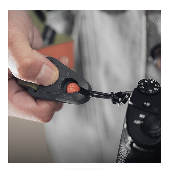 Remen uključuje originalne brze spojnice s mehanizmom za zaključavanje u središtu, osiguravajući da vaš fotoaparat ostane siguran dok ga namjerno ne otpustite. Unutarnji sloj s upozorenjem o zamjeni na omčama obavještava vas kada je vrijeme za zamjenu radi sigurnosti. Podesivi brzi regulatori s obje strane omogućuju vam da postavite remen na idealnu duljinu za nošenje oko vrata, ramena ili preko tijela.