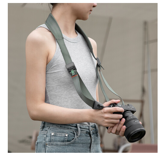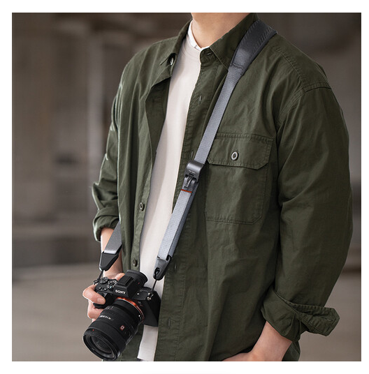 Elastična EPDM podstava i aerodinamičan oblik povećavaju udobnost i smanjuju umor tijekom dugih snimanja, dok siva završna obrada dodaje elegantan, profesionalan izgled. Konfiguriran s QR pločicom tipa Arca, ovaj remen je svestran za različite postavke fotoaparata.