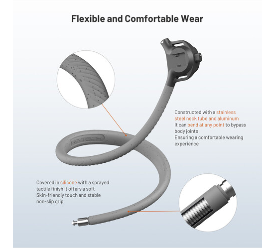 Podesiva traka za vrat izrađena je od nehrđajućeg čelika i aluminija, što je čini dovoljno fleksibilnom da se savije u savršen kut, a istovremeno ostaje izdržljiva i stabilna. Mekani, koži prijateljski silikonski premaz pruža udobnost tijekom dulje uporabe i ima neklizajuću površinu kako bi snimka ostala stabilna.