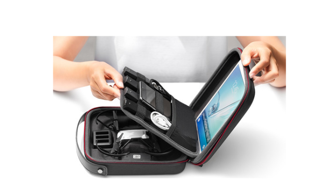 Mjesto za dron, zaštitnik propelera, baterije, punjač, USB kabele, SD kartice, pametni telefon i tablet od 7,9"