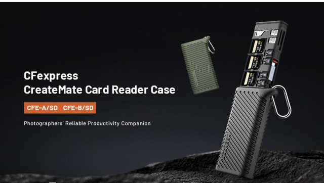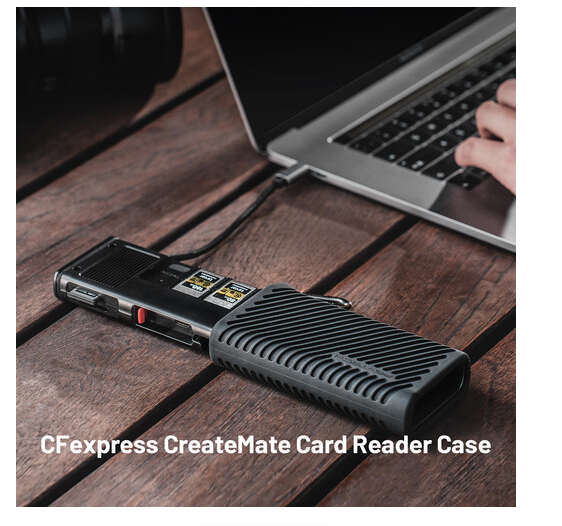 PGYTECH P-GM-168 CreateMate futrola s čitačem CFexpress Type A i SD kartica kombinira brzo čitanje kartica i sigurno pohranjivanje za profesionalne fotografe i videografe. Dizajnirana za CFexpress Type A i UHS-II SD kartice, ima sustav s dva utora za kartice sposoban prenositi podatke brzinama do 1000 MB/s za CFexpress Type A i 312 MB/s za SD/microSD kartice. Kućište može pohraniti do 12 kartica, uključujući tri CFexpress Type A, tri SD, četiri microSD i dvije nano SIM kartice, a dolazi s adapterom za microSD na SD i višenamjenskim čepom za izbacivanje.