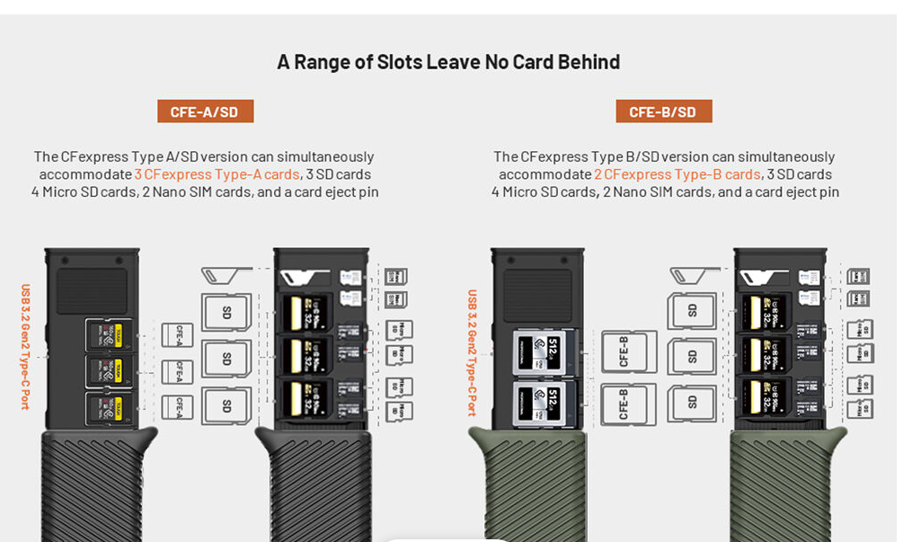 Spremište za do 12 kartica: 3 CFexpress Type A, 3 SD, 4 microSD, 2 Nano SIM