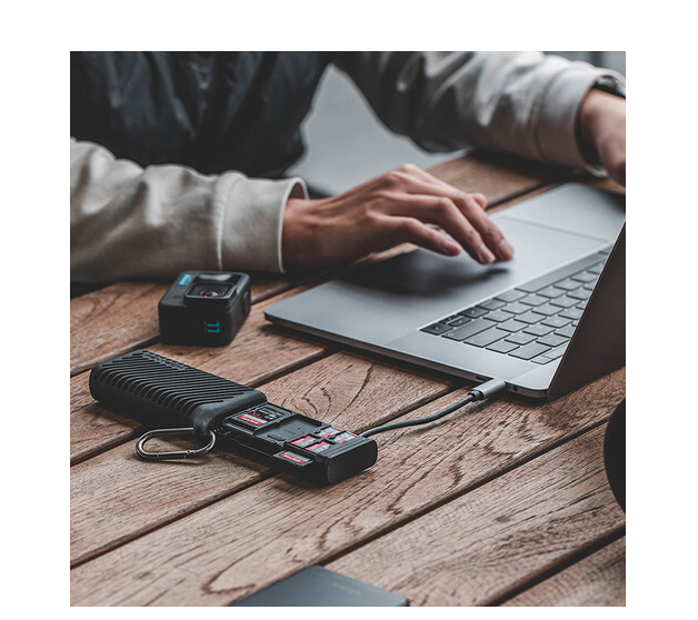PGYTECH P-GM-163 Classic Black CreateMate futrola za brzi čitač kartica kombinira robusni čitač kartica i rješenje za pohranu. Sa utorima za SD, microSD i nano SIM kartice, ima IP54 zaštitu i omogućuje brzi prijenos podataka putem USB-C priključka do 312 MB/s, što je čini idealnom za fotografe i kreatore sadržaja u pokretu.