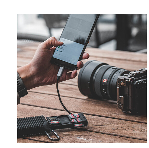 PGYTECH P-GM-163 CreateMate futrola za brzi čitač kartica u klasičnoj crnoj boji svestrano je rješenje za pohranu i prijenos podataka za fotografe, videografe i operatere dronova. Ova kompaktna futrola kombinira brzi čitač kartica s organiziranim prostorom za četiri SD kartice, četiri microSD kartice i dvije nano SIM kartice. Opremljen jednim UHS-II SDXC utorom za kartice i jednim UHS-II microSDXC utorom za kartice, omogućuje brzinu prijenosa podataka do 312 MB/s putem integriranog USB-C 3.2 Gen 1 kabela.