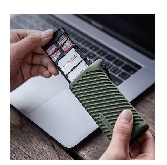 PGYTECH P-GM-162 CreateMate kućište za brzi čitač kartica sve-u-jednom rješenje je za fotografe, videografe i tehnološke entuzijaste kojima je potreban siguran prostor za pohranu i brzi prijenos podataka na više memorijskih kartica. Kompaktno mahagonijsko zelenilo kućište može pohraniti do četiri SD kartice, četiri microSD kartice i dvije nano SIM kartice, a istovremeno nudi jedan UHS-II SDXC utor i jedan UHS-II microSDXC utor za brzo čitanje i pisanje do 312 MB/s. Dizajniran za praktičnost, ima integrirani USB-C 3.2 Gen 1 kabel, kompatibilan je s sustavima Windows, Mac, Linux i Android te besprijekorno radi s fotoaparatima, dronovima, pametnim telefonima i akcijskim kamerama. Njegov dizajn s IP54 zaštitom štiti od padova, prašine i prskanja, dok priloženi čepić za izbacivanje osigurava sigurno vađenje kartica. Izrađen od aluminija i plastike, ovaj lagani kućište od 4,7 oz (133 g) kombinira izdržljivost, prenosivost i učinkovitost u jednom svestranom rješenju.