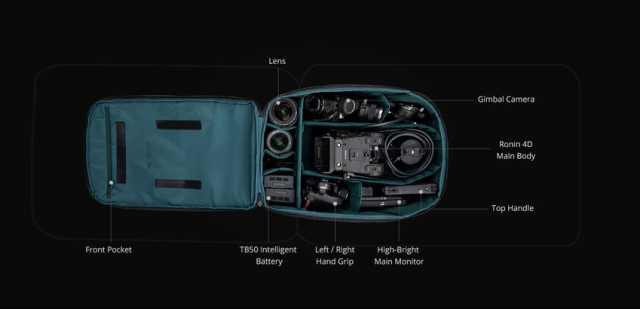 Osim za prijevoz, ovaj ruksak se zahvaljujući ugrađenom PGYTECH Beetle Clip kopči pretvara u mobilnu operativnu platformu koja sigurno pričvršćuje glavno kućište Ronin 4D unutar ruksaka. Ovaj dizajn smanjuje veličinu opreme, istovremeno poboljšavajući ravnotežu i udobnost tijekom rada. Podesive kopče za kameru, zajedno s odvojivim naramenicama za prsa i struk, pomažu ravnomjerno raspodijeliti težinu i značajno smanjuju umor operatera tijekom dužih snimanja.