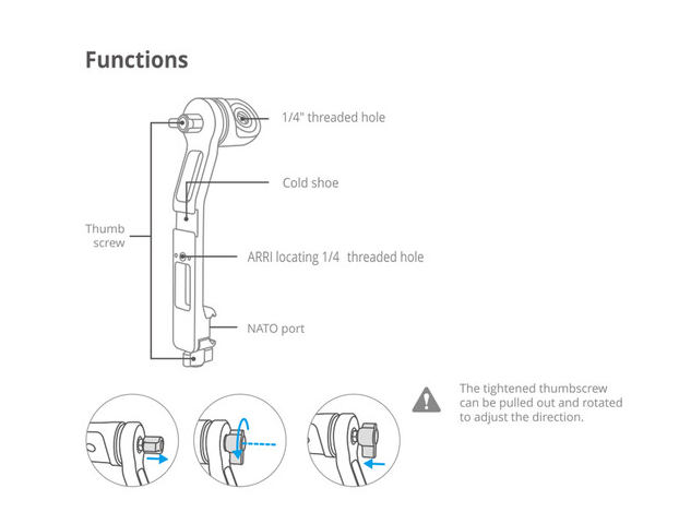 Izrađen od lagane, ali izdržljive aluminijske legure, rukohvat uključuje više sučelja za proširenje, uključujući nosače za hladne patike i navojne rupe od 1/4"-20, što vam omogućuje pričvršćivanje mikrofona, monitora, svjetala ili druge dodatne opreme. Kompaktan i prijenosan, idealan je za filmaše i kreatore sadržaja koji žele proširiti svoje kreativne mogućnosti bez kompromisa u udobnosti ili kontroli.