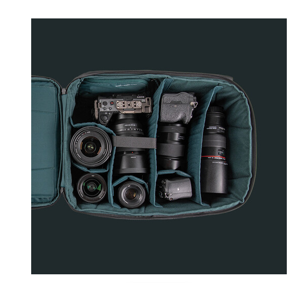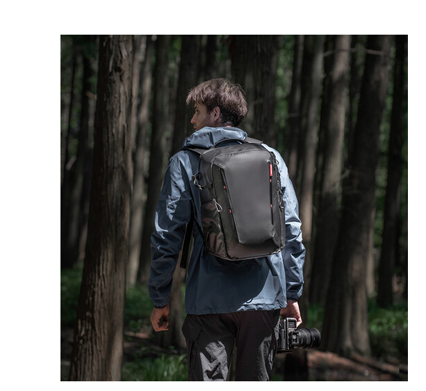 Ruksak ima bočni džep za brzi pristup za hitno pronalaženje opreme, remene za stativ, skriveni AirTag džep i dodatni prostor za pohranu baterije. Ergonomski elementi dizajna, uključujući podstavljene naramenice, remen za struk i ventiliranu stražnju ploču, ublažavaju pritisak tijekom duljeg nošenja. Višestruke gornje, bočne i stražnje ručke omogućuju jednostavno podizanje i rukovanje, što ga čini idealnim za putovanja, snimanje na lokaciji ili svakodnevno putovanje na posao.
