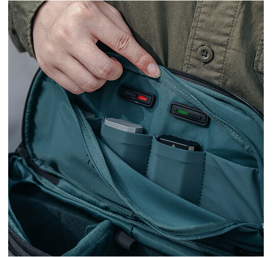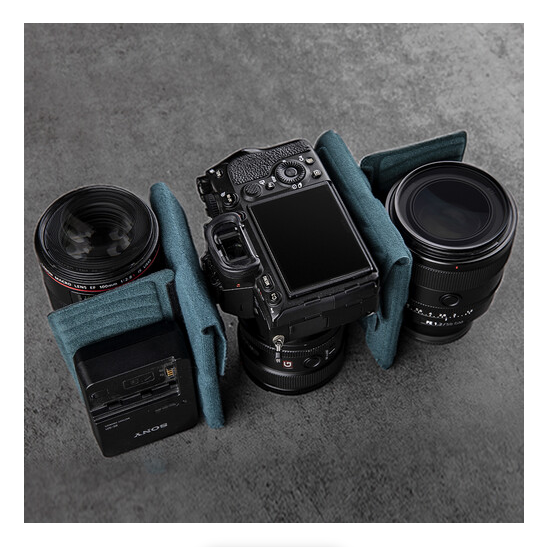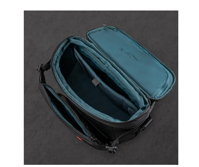 Za dodatnu svestranost, srednji dio se može otkopčati i podići kako bi se kapacitet torbice povećao s 7 na 9 L. U proširenom načinu, torbica može držati fotoaparat s objektivom od 70–200 mm postavljenim okomito, dodatni objektiv i iPad Pro do 11". Unutra, podesive podstavljene pregrade štite vašu opremu, dok džep za pohranu baterija s indikatorom napunjenosti pomaže učinkovito upravljati napunjenim i istrošenim baterijama.