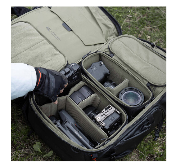 Udobnost je poboljšana 3D konturiranim ramenim naramenicama, pojasom za struk i ergonomskom leđnom pločom od prozračne mrežice. Kada je potreban dodatni kapacitet, gornji pretinac se proširuje za 10 L, čime se ukupni kapacitet povećava na 40 L, što ga čini savršenim za duža fotografska putovanja ili avanturistička snimanja.