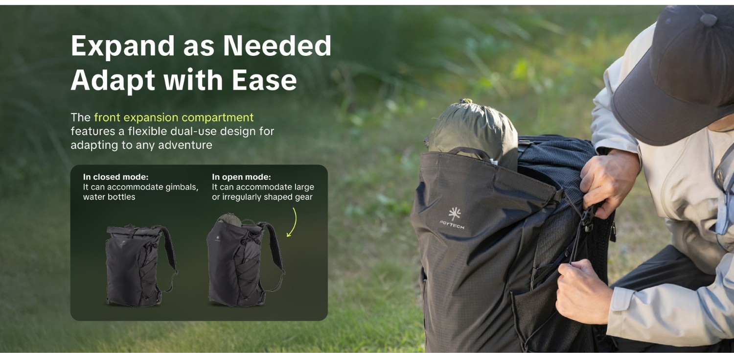 Prednji proširivi odjeljak ima fleksibilan dizajn s dvostrukom namjenom za prilagodbu svakoj avanturi.