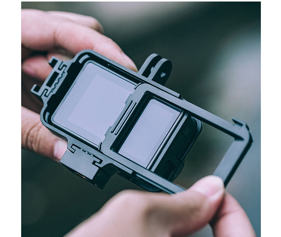 Nosač s navojem 1/4"-20 omogućuje dodatne mogućnosti montaže, dajući vam mogućnost postavljanja svjetala, mikrofona ili drugih dodataka na savršenu udaljenost od kamere. Dizajniran za vodoravnu i okomitu orijentaciju, okvir omogućuje potpuni pristup zaslonu, tipkama i priključcima vašeg uređaja Osmo Action, osiguravajući neometan rad dok proširuje vaše kreativne mogućnosti. Njegov lagani dizajn dodaje samo 1,1 oz (30 g) bez ugrožavanja stabilnosti.