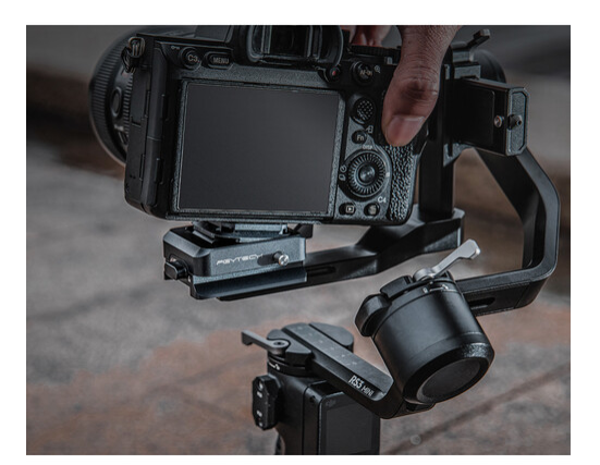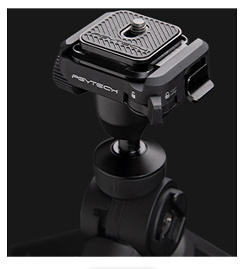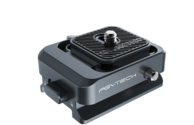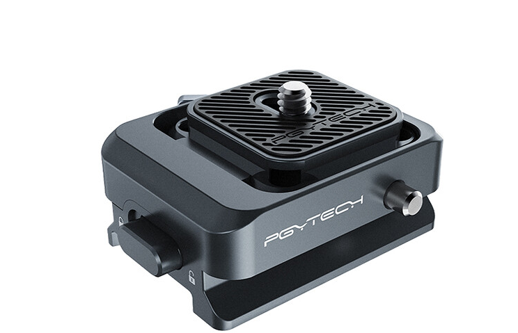 Stezaljka ima 1/4"-20 montažni vijak na ploči za brzo otpuštanje i uključuje više montažnih priključaka, što omogućuje kompatibilnost s tronojkama, klizačima ili drugim PGYTECH stezaljkama. Njezin dizajn ne utječe na stabilizacijsku ravnotežu vašeg Ronin gimbala. Stezaljka je idealna za profesionalne postavke gdje su potrebne brza instalacija i izmjenjivost.