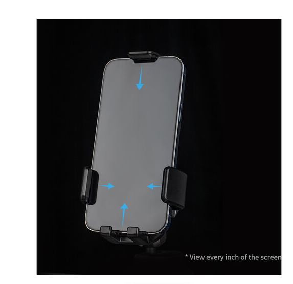 Držač za telefon koji obavija cijeli uređaj osigurava ga protukliznim gumiranim nožicama, bočnim krakovima i gornjom stezaljkom, osiguravajući da telefon ostane čvrsto na mjestu. Zaključavajuća magična ruka s dvostrukom kuglastom glavom omogućuje nagib od 180° i rotaciju od 360°, dajući vam potpunu kontrolu nad kutom gledanja. Brzo otpuštanje na gumb omogućuje jednostavno umetanje i vađenje telefona jednom rukom, dok otvor za priključke omogućuje da kabeli za punjenje ili podatkovni kabeli ostanu priključeni tijekom upotrebe.