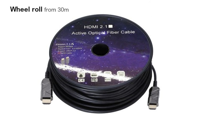 - HDMI 2.1 Ultra High Speed kabel s aktivnim optičkim vlaknima, podržava HDMI2.1 ili niži HDMI2.0 i HDMI1.4