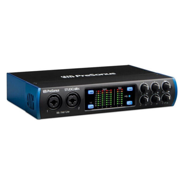 Nevjerojatna kvaliteta zvuka s četiri poznata PreSonus® analogna mikrofonska pretpojačala XMAX i profesionalnim značajkama mjerenja i praćenja čine Studio 68c idealnim za male produkcije, elektroničke umjetnike i bendove koji žele imati kontrolu nad svojim snimkama. Dva stereo izlaza pružaju fleksibilne mogućnosti izlaza. Snažno pojačalo za slušalice s A/B prebacivanjem omogućuje slušanje bilo kojeg miksa, idealno za nastupe uživo. S Studio One® Artist licencom uključenom uz registraciju, Studio 68c je moćan uređaj za audio produkciju odmah po vađenju iz kutije.