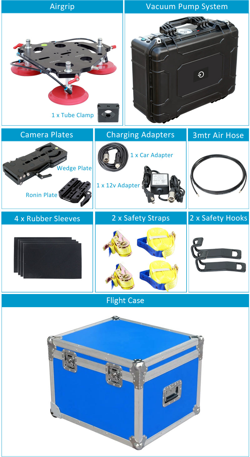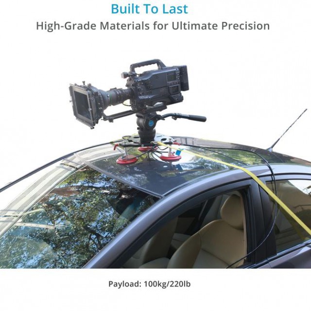 Želite montirati težu filmsku kameru na automobil, kamion, brod ili bilo koju neporoznu površinu? Proaim AirGrip, svestrani sustav za montažu kamere, obećava isporuku širokog spektra glatkih snimaka profesionalnog izgleda. Montažna ploča prihvaća kameru izravno ili montiranu pomoću klinaste/nagibne ploče ili u kombinaciji s nekim od najpopularnijih 3-osnih kardanskih stabilizatora kao što su modeli DJI Ronin i Movi kada se montiraju na vozilo. Tri vakuumske čašice mogu nositi maksimalnu nosivost do 100 kg / 220 lbs; i vozilo koje se kreće najvećom brzinom od 200 km/h.