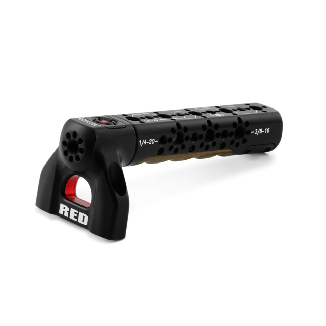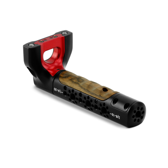 V-RAPTOR ® gornja ručka lako se postavlja na vrh vašeg V-RAPTOR ® kućišta fotoaparata, a istovremeno nudi kombinaciju udobnosti i korisnosti za nošenje ili snimanje fotoaparata. Ova strojno montirana ručka ima ergonomske Bocote drvene umetke s kontrolom okidača kamere. Također ima mogućnost konfiguriranja na više načina kada se koristi s kompletom za proširenje gornje ručke i uključuje više navoja 1/4-20 i 3/8-16.