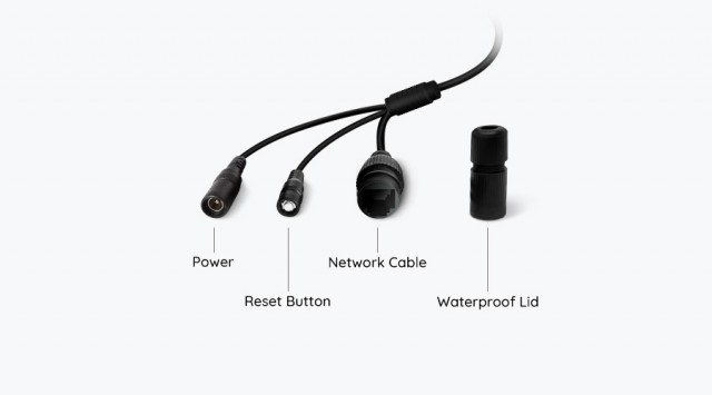 - RJ45 10M/100Mb/s konektor - Napajanje - Utor za mikro SD karticu - Ugrađeni mikrofon - Tipka za resetiranje