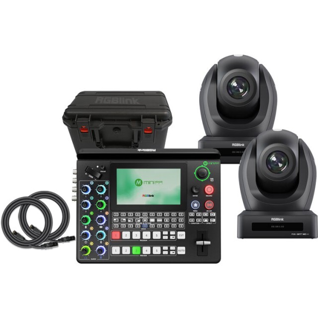 RGBlink mini-edge SDI s 2 vue 4K 20X PTZ paketom je cjelovito, prijenosno rješenje za produkciju uživo koje kombinira profesionalni 10-kanalni video preklopnik s dvije PTZ kamere s umjetnom inteligencijom. Dizajniran za emitiranje, streaming, edukaciju i događaje, ovaj paket pruža snažno HDMI/SDI preklapanje, PTZ kontrolu, streaming na više platformi i snimanje videa studijske kvalitete u robusnom sustavu s tvrdim kućištem.