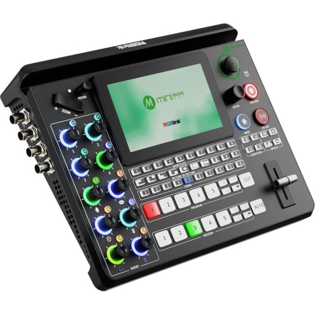 RGBlink mini-edge SDI s 2 vue 4K 20X PTZ paketom je sveobuhvatni produkcijski komplet dizajniran za profesionalno okruženje prijenosa uživo, snimanja i emitiranja koje zahtijeva pouzdanost, fleksibilnost i mobilnost. U njegovoj srži je mini-edge SDI 10-kanalni sveobuhvatni preklopnik koji podržava četiri HDMI ulaza, četiri 3G-SDI ulaza i Ethernet NDI|HX3 izvore. Dizajniran za rad 24/7, preklopnik integrira naprednu obradu videa, chroma keying, višeslojno kompozitiranje i profesionalne efekte prijelaza, a sve je smješteno u izdržljivom tvrdom kućištu za jednostavan transport.