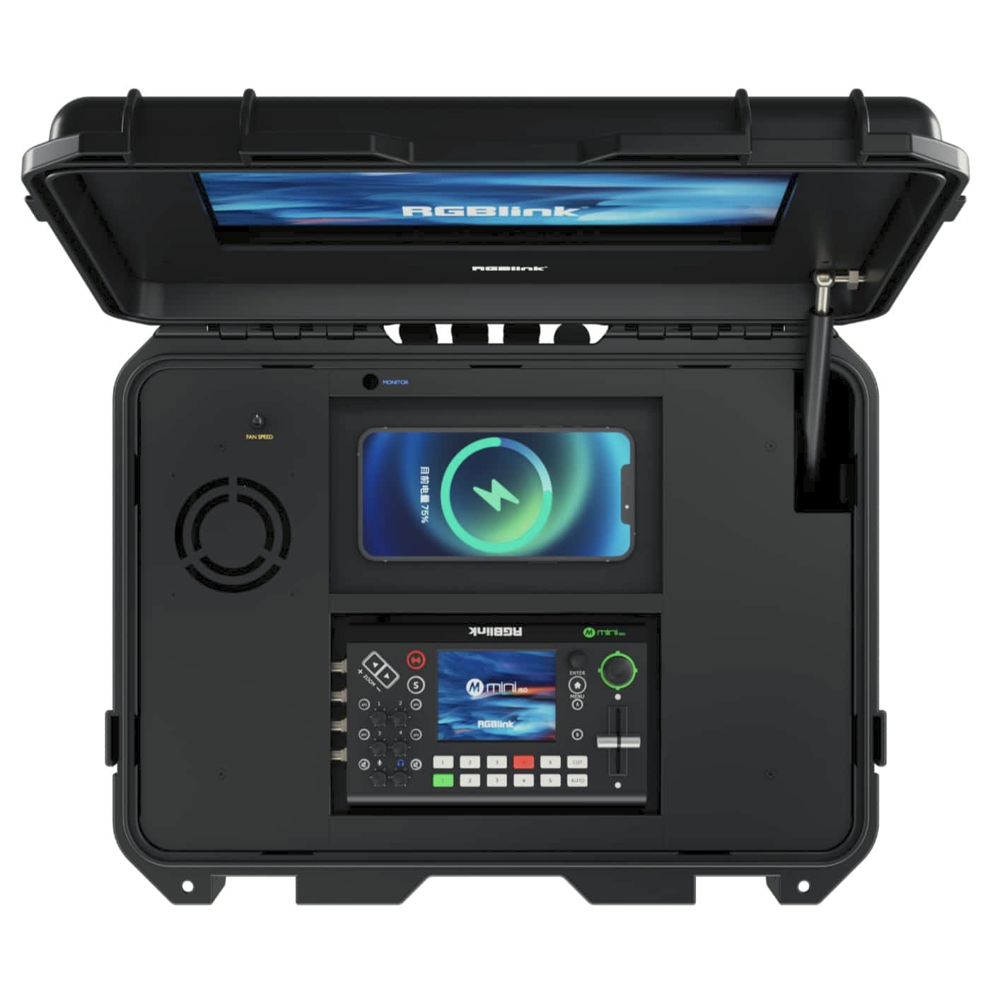 RGBlink mini-ISO 4S je kompaktni, prijenosni 10-kanalni video preklopnik dizajniran za profesionalnu višekamernu produkciju i hibridni streaming. S 4K HDMI i SDI ulazima, dvostrukim HDMI izlazima, USB snimanjem i UVC izlazom za web kameru, integriranim PTZ upravljanjem, RTMP streamingom i ugrađenim 14-inčnim monitorom s podrškom za bežično punjenje, pruža cjelovito rješenje po principu "ključ u ruke" za događaje, produkcije uživo i mobilno emitiranje.