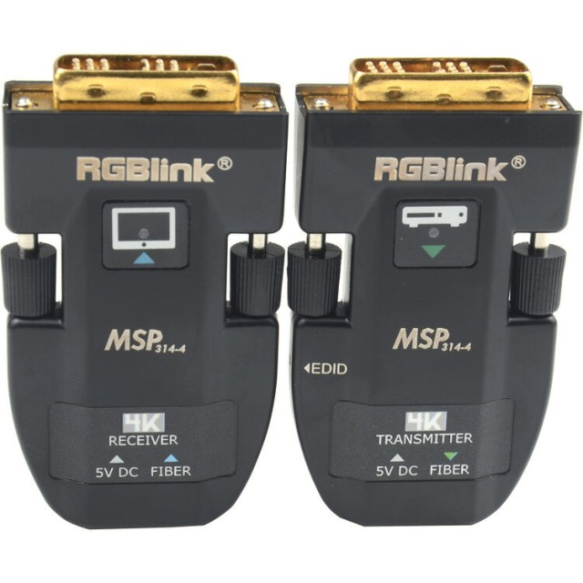 RGBlink MSP 314-4 je svestrani DVI-over-fiber extender sustav koji vam omogućuje proširenje visokokvalitetnih video signala na velike udaljenosti uz minimalne smetnje. Kompaktne odašiljačke i prijemne jedinice imaju integrirane LC optičke konektore i podržavaju rezolucije do WUXGA (1920×1200@60Hz) i HDMI 1.4 (4Kx2K@30Hz). Korištenjem jednomodnog optičkog vlakna, video se može prenositi do 2000 metara, dok višemodno optičko vlakno podržava udaljenosti do 300 metara.