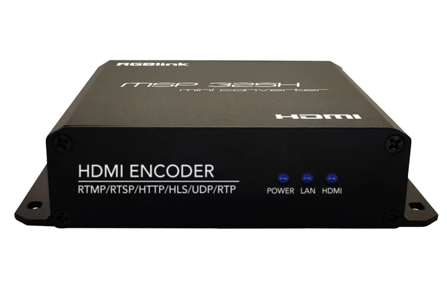 RGBlink MSP 325H je profesionalni HDMI streaming enkoder dizajniran za višeplatformski streaming uživo. Podržava jedan glavni stream i tri podstreama, omogućujući istovremeno emitiranje na više odredišta s RTMP i SRT protokolima. Korisnici mogu upravljati streamovima putem web sučelja i pregledavati glavne i podstreamove u stvarnom vremenu. Uređaj nudi potpuno konfigurirajući OSD (prikaz na zaslonu) za riječi, logotipe, pomični tekst i vremenske oznake, zasebno prilagođene za glavne i podstreamove.