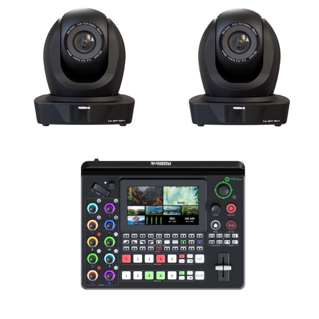 2 HDMI kamere i miniEdge prekidač. 20x vue PTZ*2, mini-edge *1, 15m CAT6*2 15m AOC kabel * 2, 8 portova PoE switcher * 1 PTZ ABS kućište *1