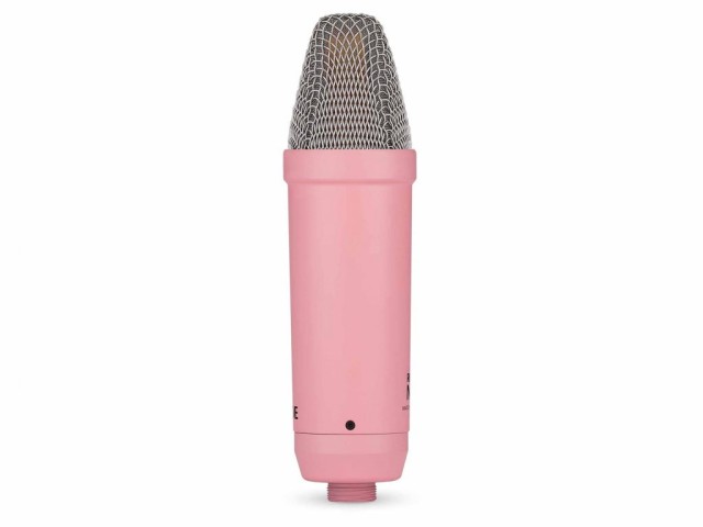 velkomembránový studiový kondenzátorový mikrofon, 1“ membrána, XLR(m) konektor, vysoká dynamika a akustický tlak SPL, protiotřesový koš s pop filtrem, mikrofonní kabel, bytelné tělo mikrofonu, barva růžová